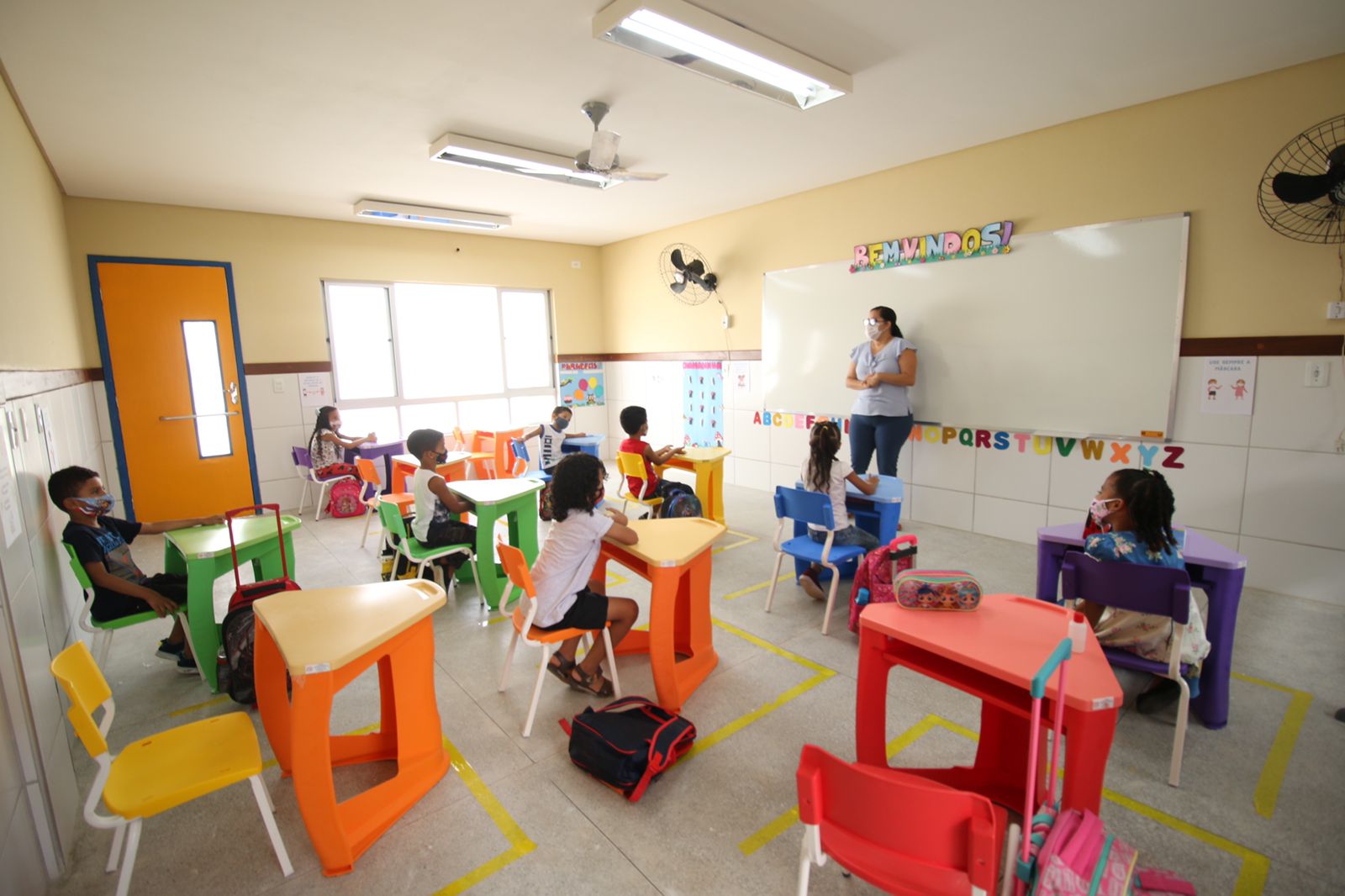 Para o retorno presencial, foi elaborado um protocolo sanitário específico. Entre as normas estabelecidas pelo documento estão o distanciamento de pelo menos um metro entre as pessoas em todos os ambientes das escolas; o uso obrigatório de máscaras; a higienização das mãos; e a aferição da temperatura no momento da chegada.