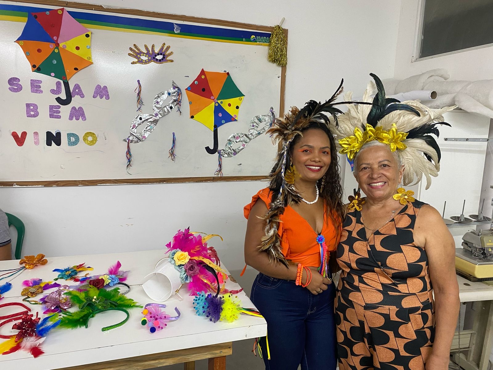 Entre os cursos oferecidos, o destaque é a Oficina de Customização de Adereços, que incentiva a criatividade na produção artesanal de ornamentos carnavalescos e impulsiona o negócio das empreendedoras durante os festejos.