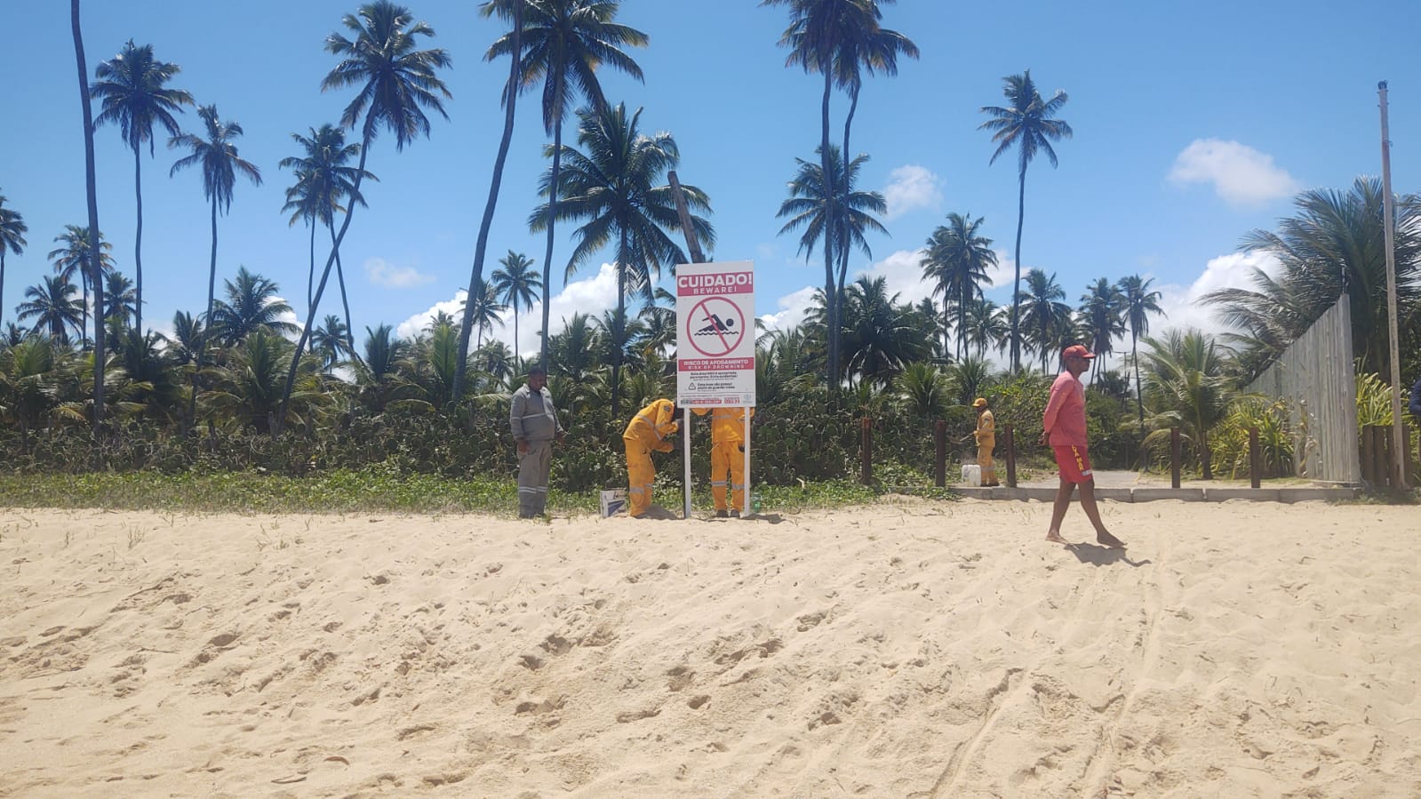 Como forma de reforçar o cuidado com os banhistas que frequentam as praias do litoral do município, a Prefeitura do Ipojuca, por meio da Secretaria de Defesa Social, iniciou, nesta sexta-feira (11), a instalação de novas placas de alerta em áreas específicas não apropriadas para o banho de mar. A iniciativa municipal, em parceria com a Secretaria Especial de Comunicação, responsável por confeccionar os modelos seguindo símbolos universais, visa garantir maior segurança para a população naqueles trechos em que existem valas e correntezas mais fortes, o que aumenta o risco de afogamentos.