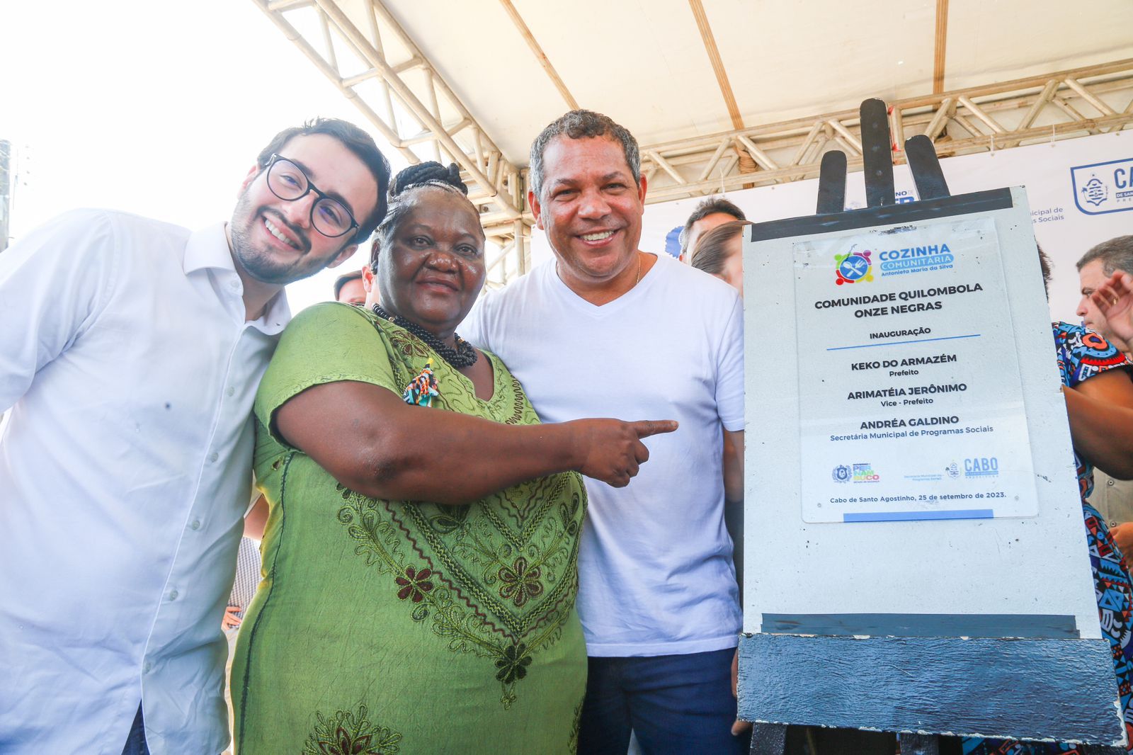 O prefeito do Cabo de Santo Agostinho, Keko do Armazém, inaugurou nesta segunda-feira (25), a cozinha comunitária no Quilombola Onze Negras. O equipamento é o primeiro em área quilombola do Estado e no segundo no Brasil. A cozinha comunitária foi criada em parceria com o Governo do Estado, co-financiador do projeto. O evento de inauguração contou com a presença da secretária estadual de Desenvolvimento Social, Criança, Juventude e Combate às drogas, Ana Carolina Cabral, representando a governadora Raquel Lira.