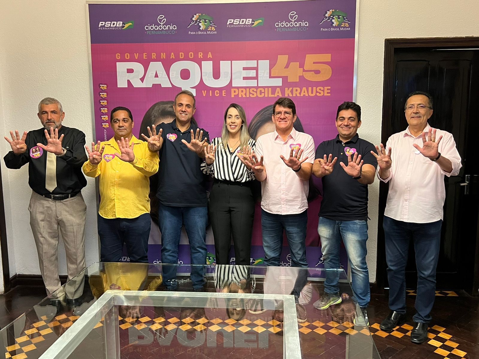 Também estão com Raquel e Priscila o presidente da Câmara, Eduardo Batista (União Brasil), o vereador Renato Sandré (Cidadania), o ex-vereador Quinho Fenelon (Republicanos), o presidente do PSDB de Goiana, Walter Batista, o candidato a vereador nas eleições de 2020 Iberlúcio Silva, as ex-gerentes do Procon de Pernambuco Danyelle Sena e Ana Carolina Guerra, além de mais de 20 lideranças da cidade que estiveram presentes na reunião na sede do PSDB.